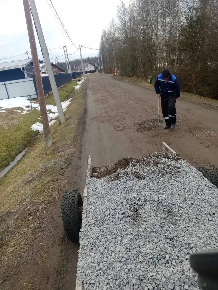 Начат ремонт проездов в коттеджном посёлке Кокосы протяжённостью 5 900 метров: затрачено 31,3 м³ сыпучих материалов.